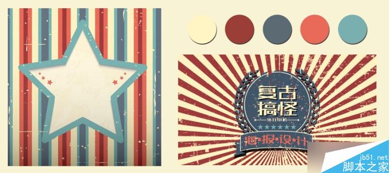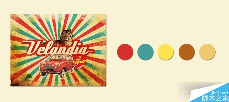 常見使用的顏色有紅色,藍色,米色,淡黃色。我推薦一種選擇配色的保險方法,就是在網上尋找顏色你喜歡的復古海報,從中提取配色來設計你的海報。
