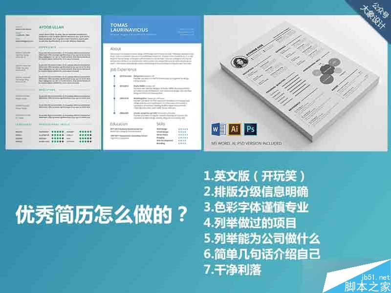 別人看中的是你的工作能力,而不是你會不會PS,會不會AI,會不會3D MAX,你只需要說明自己能干什么就行了,能為公司做什么就ok!