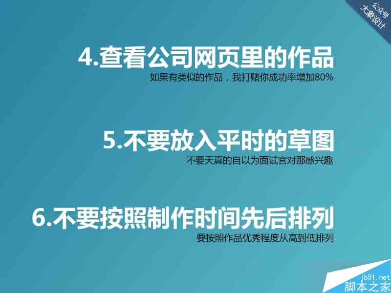 接下來你要記住作品中所使用的字體名稱和設計思路,如果你是用的別人的作品(應屆畢業生不必為這個感到丟人。)那么,一定要想好作者當時的創作思路,不然很難讓面試官相信你。