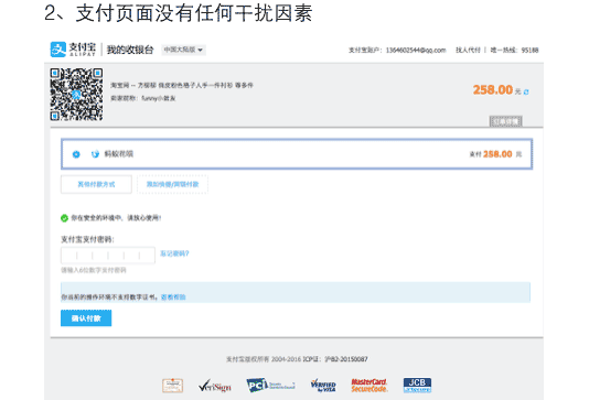 例如在淘寶網購物流程中,在購物車頁面會推薦頁面以增加交易額,但一旦用戶進入支付流程,為了引發并促使用戶付款的心流狀態完成,支付頁面不會有任何外聯接口。