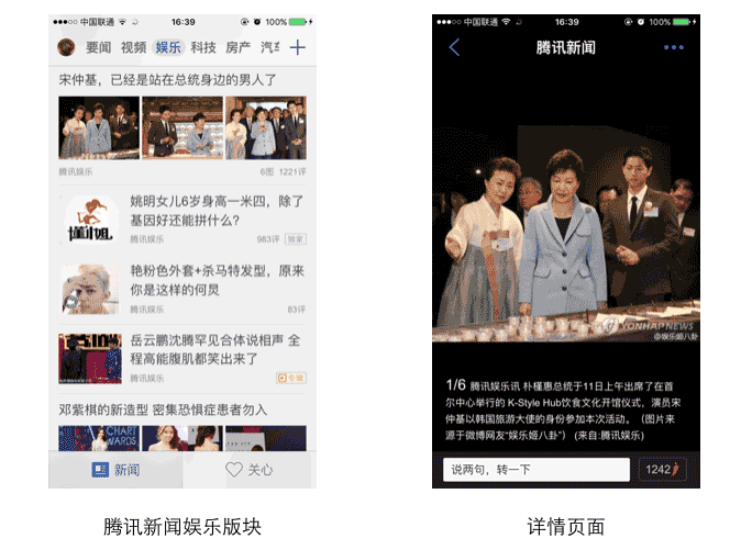 如QQ新聞中頂部bar作為大板塊分類,頁面中顯示該版塊下的內容,再點擊相應內容進入詳情。