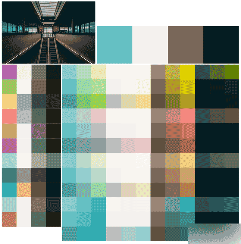 這整個(gè)過(guò)程幫助我們生成了相當(dāng)多不同的顏色。如果我把最初的配色去掉,它們就是這些: