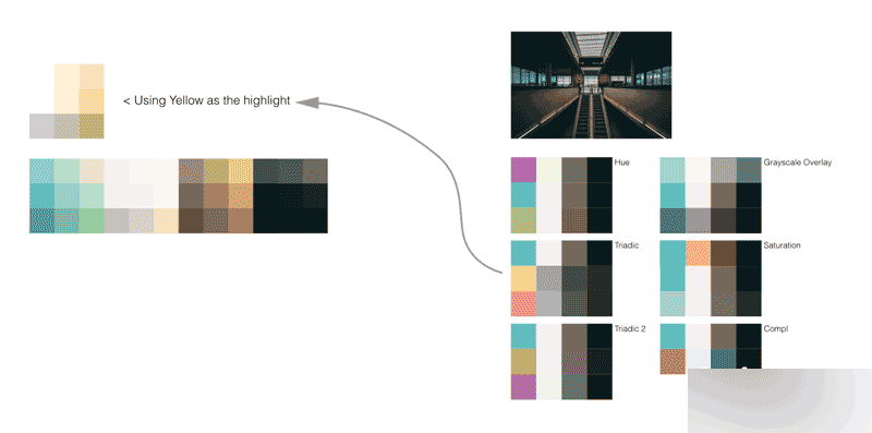 首先要做的是從圖片中選取一些顏色。目前,我只會(huì)選出4種顏色:一種強(qiáng)調(diào)色彩、一種淺色、一種深色、還有一種其他顏色。我們之后可以隨時(shí)回來(lái)查看這張圖片。