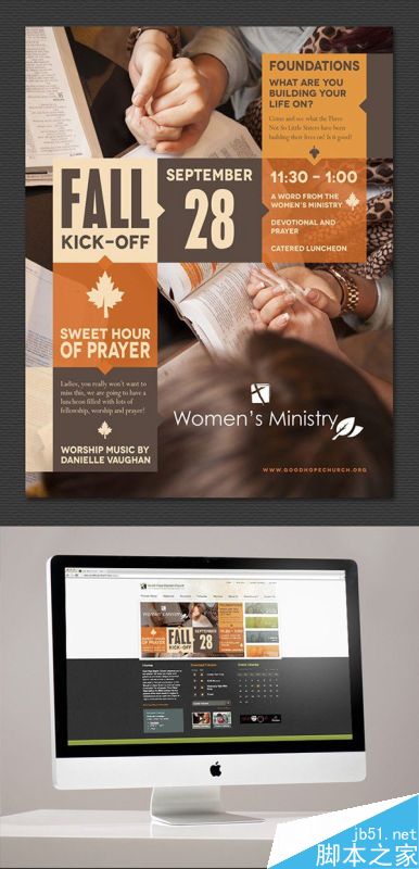 維持在一個色相可以更好的幫助設計進行視覺上的銜接。比如Keith Johnson的傳單和網頁橫幅特征就不是創建視覺重點,而是用了相近的顏色來統一設計。