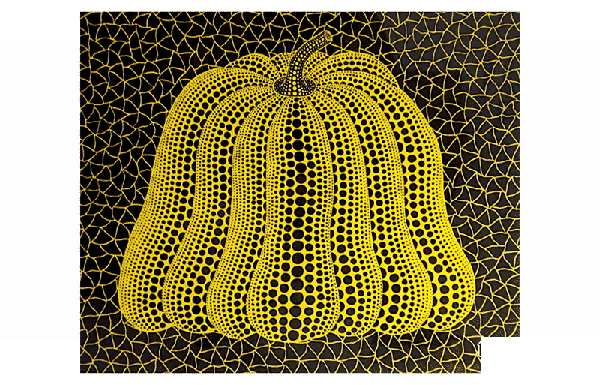 在運用點作為主角構圖的案例中,最常見的就是利用點的集合關系進行構圖,日本草間彌生的作品是最具有代表性的。圓點本身的造型柔美、可愛,利用大大小小的圓點安排空間深度的關系,有機組合就能形成有趣的圖案。下圖是草間彌生的南瓜圖。