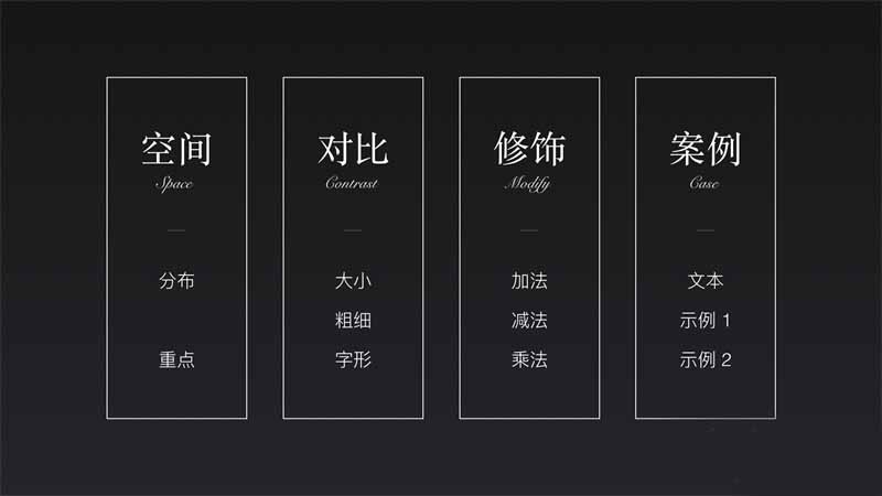 最后,修飾。可有可無,看畫面的需要。通過各種加法、減法、乘法進行修飾,可以為單調的文字加上一些細膩的細節。