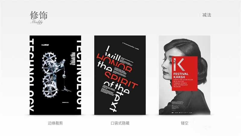 修飾上的減法:在文案的表現形式中做出裁剪,隱藏或者鏤空。