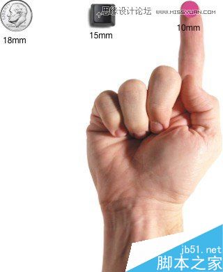 如果你的頁(yè)面是針對(duì)移動(dòng)端設(shè)計(jì)的,那么網(wǎng)頁(yè)中按鈕的尺寸應(yīng)當(dāng)和手指的大小相匹配。MIT的Touch Lab 通過研究發(fā)現(xiàn),指面的觸摸尺寸平均大小為 10-14mm,而指尖的平均尺寸是8-10mm,也就是說10mmx10mm的控件尺寸設(shè)計(jì)是比較合理的大小。