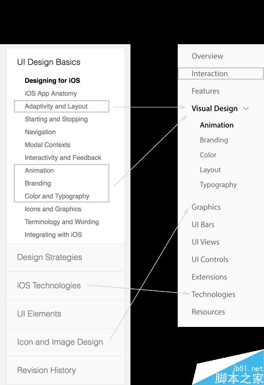 然后,我們再拿iOS 9 和 iOS 10 的HIG結構框架進行一下對比: