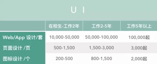 設計師是根據頁面復雜程度預估工作量,進而確定設計費用的。雖然 Web 和 App 頁面大小不同,但頁面復雜程度主要與產品需求有關,與頁面尺寸沒有必然的聯系,因此 Web 和 App 的參考費用相同。