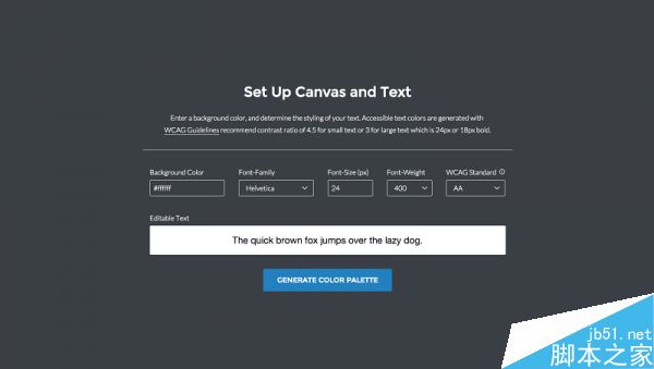 你可以選擇一個背景色,然后網站就會根據你選擇的背景色給出不同的文字色彩搭配方案。