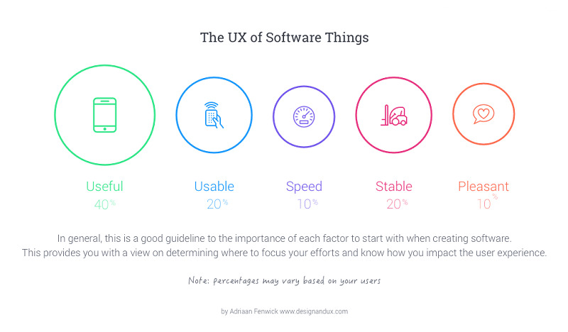 這個(gè)圖是個(gè)很好的量化的標(biāo)準(zhǔn),可以看到的是,好的UX,最重要的是你要做一個(gè)款有用的產(chǎn)品,能夠幫用戶解決問題的。記得之前在UCLA玩的時(shí)候,朋友實(shí)驗(yàn)室的大牛PhD就想做一款產(chǎn)品,和點(diǎn)贊功能相反的產(chǎn)品,是用來“點(diǎn)恨”的。他的初衷是如果兩個(gè)人討厭同樣的東西,這兩個(gè)人就可能可以成為朋友。(多么反人類的設(shè)計(jì)雖然聽起來好像有點(diǎn)道理)。這個(gè)產(chǎn)品當(dāng)然狗帶了,因?yàn)闆]給用戶解決什么問題。所以,當(dāng)你產(chǎn)品沒成功的時(shí)候,不妨先問問自己是不是根本產(chǎn)品方向就沒對(duì)。