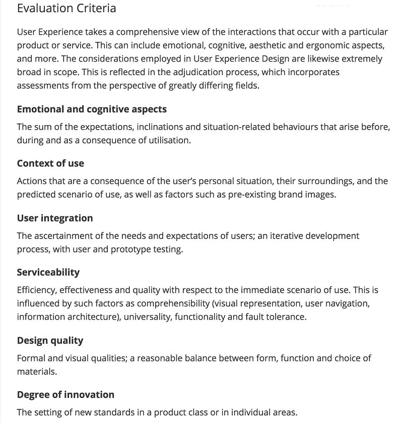 UX Design Awards的評(píng)獎(jiǎng)標(biāo)準(zhǔn) (Evaluation Criteria )