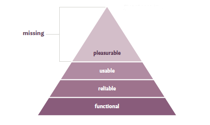 其實(shí)這個(gè)概念也沒我說的那么新,Don Norman很久之前就提過,后來MailChimp的 Aaron男神(最近加入了Invision)又寫了本書講這個(gè)事情。但是我覺得這是到現(xiàn)在為止UX界根本也沒解決的一個(gè)問題。如果誰有了好的解決方案歡迎討論。不過Aaron男神的有一個(gè)觀點(diǎn)我認(rèn)為很有意思,是基于馬斯洛需求模型的。他的網(wǎng)站戳這里: Aarron Walter 我覺得書很好大家都可以看看。