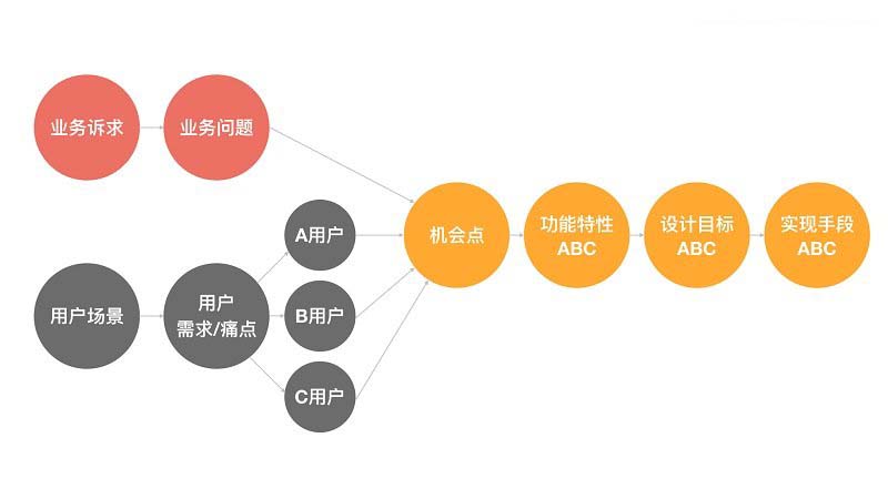 以上是我目前邊使用邊總結改進出來的一條設計分析思路(抱歉具體案例目前不太方便透露……),將以前孤立開來分析和闡述的問題、機會點、設計目標等環節串聯了起來,有了這條設計主線之后,在方案的設計和表達過程中也能做到更清晰連貫,而不是『跳躍式前進』。