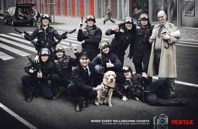 這個場景講述的是警察只顧著照相卻忘記了背后搶劫的土匪,看見相機及忘了自己的職責,通過這么一個場景去體現產品的優質。
