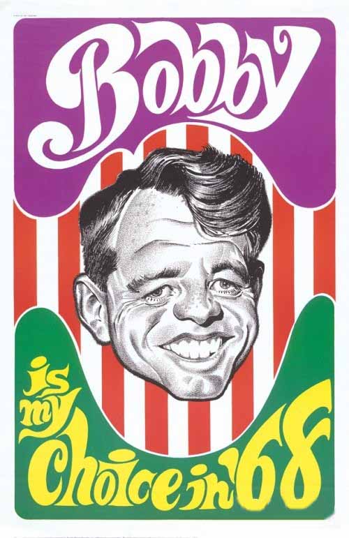 這可能是美國(guó)競(jìng)選史上最迎合"年輕人"的一張競(jìng)選海報(bào)。1968年,肯尼迪的競(jìng)選團(tuán)隊(duì)設(shè)計(jì)了這張"擁抱年輕人的海報(bào)",并配上"鮑比(肯尼迪的昵稱(chēng))是你在1968年的選擇"的直白拉票口號(hào)。