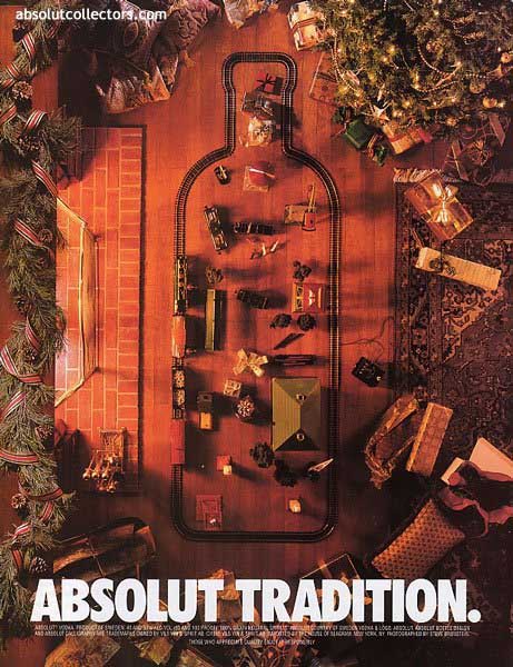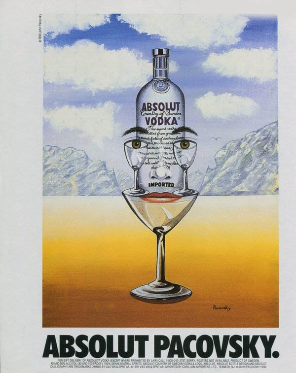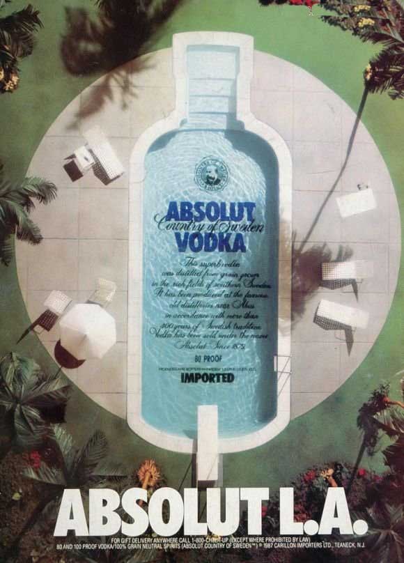 Absolut Vodka(絕對伏特加)的名氣主要來自它長期的、由廣告公司TBWA策劃的廣告活動,其超過1500個廣告都以該酒瓶的獨特形狀為基礎,加上充滿創意的花式而成,每一個海報廣告文案都是一個固定的形式:“Absolut+XXX”,而且每一款都別致,充滿創意而耐人尋味。它將自己瓶型的無限運用與創造,幾乎達到了極致,這款充滿故事的經典瓶形,這已經成為Absolut Vodka一個重要的品牌識別符號。