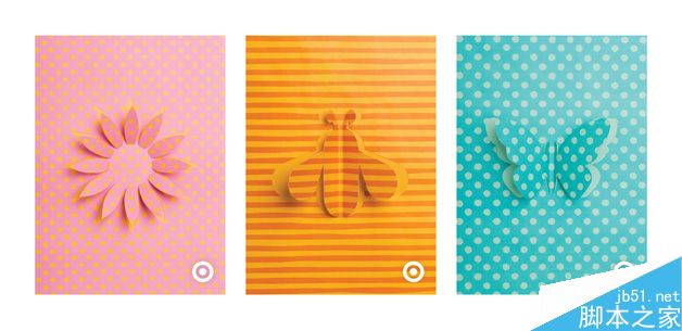 這里展示的是target春季活動(dòng)的系列海報(bào)。我選擇了一系列第一眼就能看出來(lái)表示春天的圖標(biāo),只用了一把小美工刀,一張花紙就完成了海報(bào)設(shè)計(jì)。簡(jiǎn)單的插畫風(fēng)格讓這組海報(bào)新奇有趣。