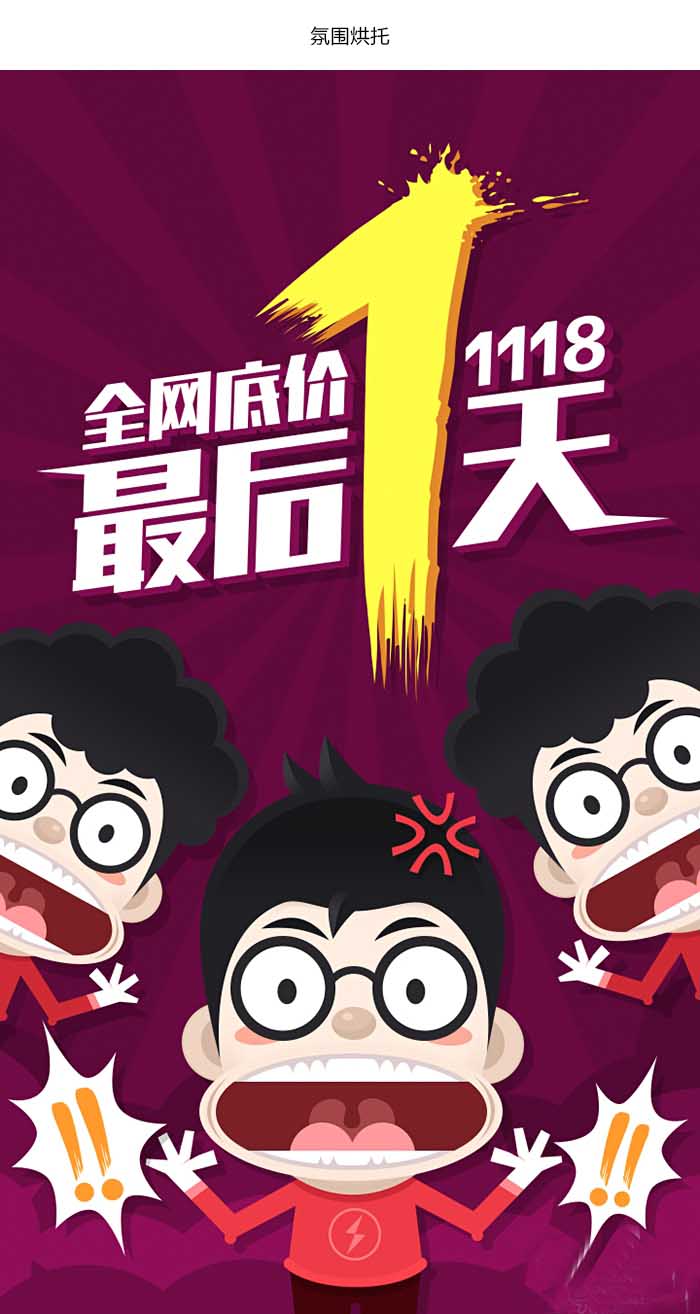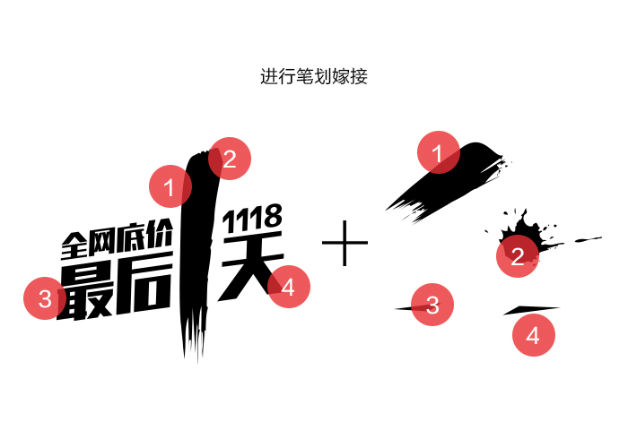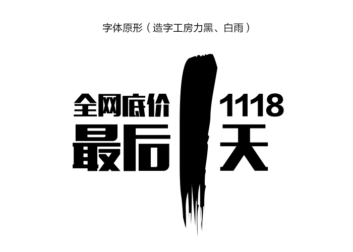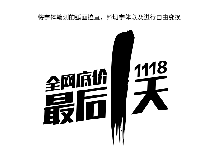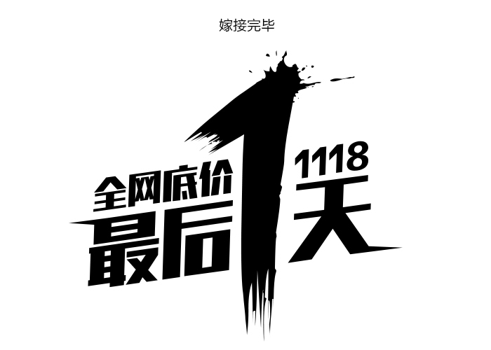 這個案例并不是一個純粹的嫁接,之前會有一些變形的過程,不過要使字體設計達到一定的深度,必須要經歷一翻周折,只有經過思考和不斷調整后的字體才會更加靈動。 第二個案例是大促啟動頁的字體設計,這個字體嫁接相對上個案例來說會更純粹更簡單一些,為什么要進行字體嫁接,因為作為啟動頁在短短的兩秒鐘里要想給用戶留下深刻印象,必須在原字體基礎上,進行改造,使字體變的更加有張力,同時給用戶創造一種緊迫感,從而勾起用戶抓緊搶購的欲望。