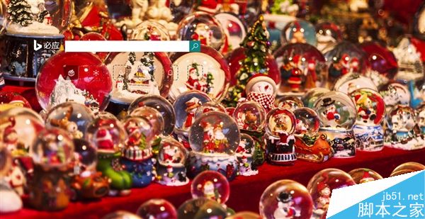 Bing:微軟的最為不同,一堆圣誕水晶球,最中間的在飄雪