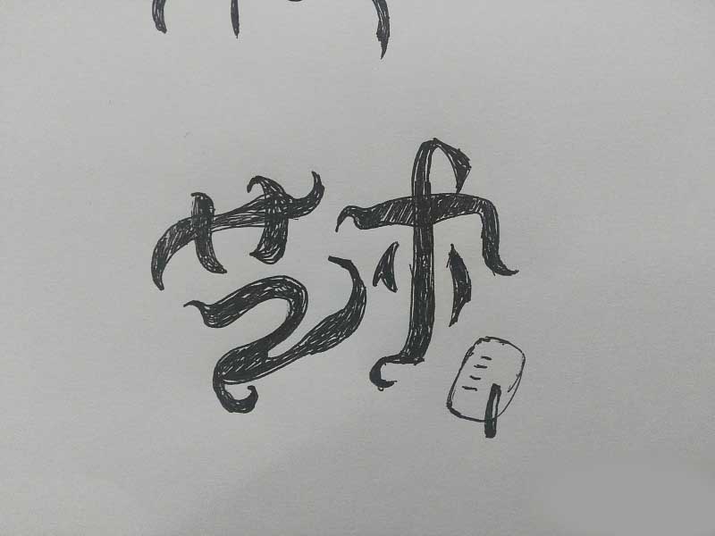 然后呢,加一個小小的點綴,我是畫畫的想到的就是畫板,那么在你設(shè)計出來的字里面感覺空的地方畫上你想到的。我畫的是一個小畫板。(等下還要上色的哦)