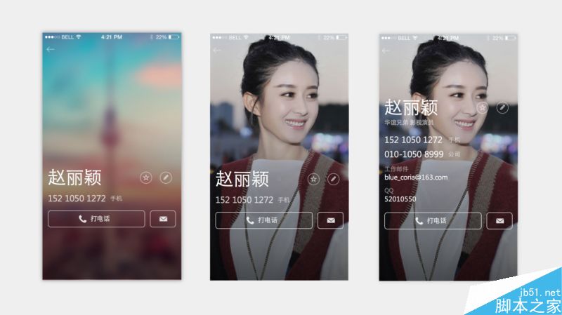 弱化頭像區域,采用模糊過的一張好看的圖片作為沒有設置頭像時的默認背景。既然打電話是第一訴求,就用極致的方式,把打電話按鈕放大,并且放置在單手最好點擊的位置區域。而當用戶設置頭像后,不再需要裁切成大頭照,直接以底圖的方式全屏顯示。當然,設計總是要考慮邊界情況,當用戶想設置更多信息時,頁面也是可以承載的,內容向上頂,直到高度撐滿全屏,底部打電話按鈕會懸停在頁面最下方。