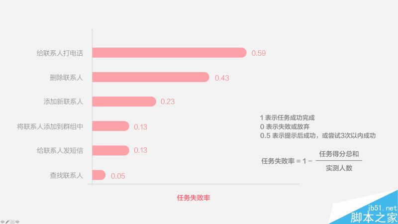 整理成圖表,大家可以看一下,給聯系人打電話是所有任務中失敗率最高的,而我們前面的結論中第3條就提到:給聯系人打電話是在這個頁面的第一訴求。