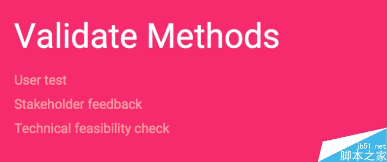 驗證環節包括用戶測試,股東反饋,和技術反饋。