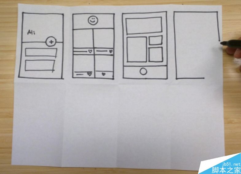 首先是個人頭腦風暴。每個人拿一張A4紙,把紙折成八個小塊,5分鐘去想8個idea,并畫下來。