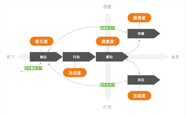 以下是筆者在五度模型的基礎上,結合在電商網站的實踐經驗總結的較為常用的模型和指標,具體使用時還是要從自身產品特點(信息型VS工具型),改版目的入手來選擇適合的指標。