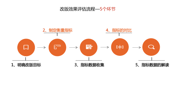筆者通常把效果評估流程分為以下幾個環節,根據大家集中集中反饋的問題情況,本文重點介紹制定指標和對比分析兩個環節。