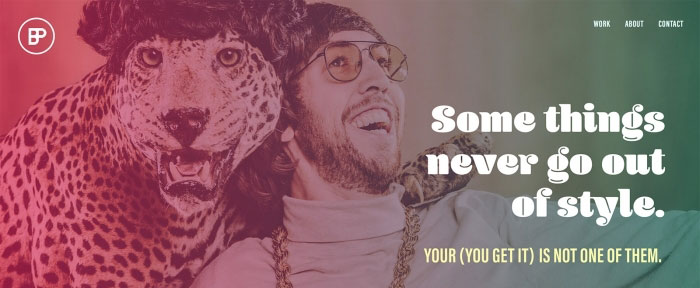 你能做的最好的事情之一就是考慮相框內(nèi)的照片比例。每個頁面上的主視覺標題可能會有相同的大小,但是如何將照片放在框架中可以是以不同的方式來實現(xiàn)的。通過縮放圖像可以營造一種遠近的感覺,看起來更小,產(chǎn)生更少的視覺重量,會讓你覺得圖片是在遠離你的位置上;使用貼近距離的組合可以使事物看起更靠近以及更大。沒有改變實際的大小(甚至未改變網(wǎng)站設計樣式或模板),你已經(jīng)創(chuàng)建了不同大小的東西。