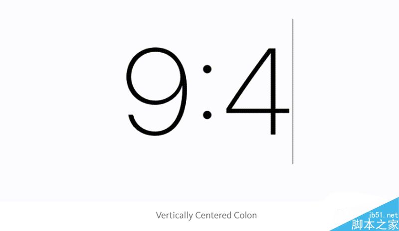 尤其需要指出的是該字體的冒號。一般字體冒號會比底部基準線高一點點,但 SF 的冒號位于兩個數字中間的時候,可以剛好居于數字高度居中的位置。