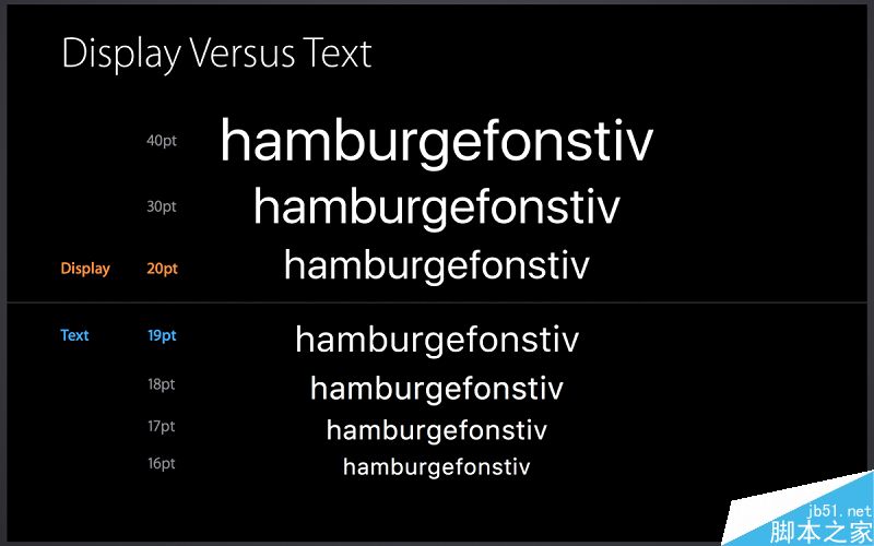San Francisco 是一整個字體家族。設計師在設計的時候,不用操心使用具體哪一種 San Francisco(比如只需要把系統調成 UILabel),系統會自動選擇合適的字體適應屏幕和字體大小。