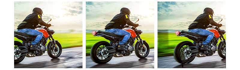 圖②摩托車全部都在畫面中,對于運動性畫面來說缺少沖擊力,但是有相對的平穩感;