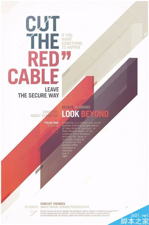 4、斜切的構圖方式,排版中加入線條的指引,仿佛給人指路的明燈,讓讀者按著作者的意圖,按照作者的思想一步一步去思考,斜線的加入,更加突出作品想傳達的信息