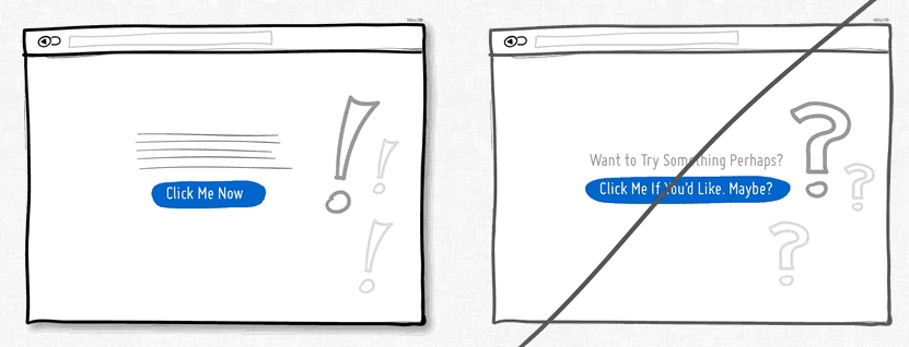 你可以通過不確定而顫抖的聲音來表達(dá)傳遞自己的意思,也可以通過很自信的方式表達(dá)。如果你在界面中的表述多以問號結(jié)束,比如”也許”,”可能”,”感興趣?” 或者”想要試試么?”,那么你完全可以把語氣變得更堅定一些。不過萬事無絕對,適當(dāng)放松措詞讓用戶有自行思考的余地也是可以的。
