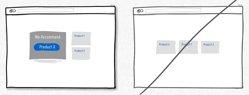 當(dāng)列出許多選項時,給出一個重點(diǎn)推薦項是個不錯的做法,盡管推薦的設(shè)置無法滿足所有用戶,但這么做是有理論依據(jù)的:當(dāng)面臨的選擇越多時,用戶就越難做出決定(決策癱瘓)。所以你可以高亮某個選項來幫助用戶做出選擇。