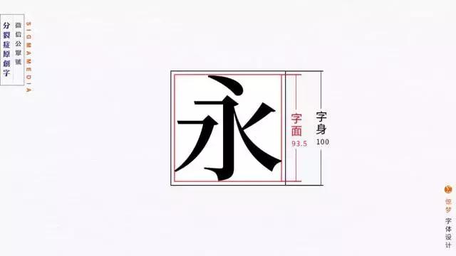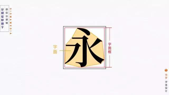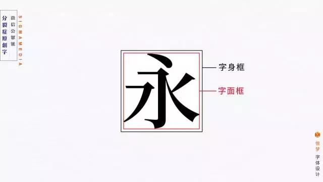 這里的"面"單純而直接,通俗來理解就是指外表,我們設計字時常會以兩個方形框作參考來限定字的外表,即字身框和字面框。