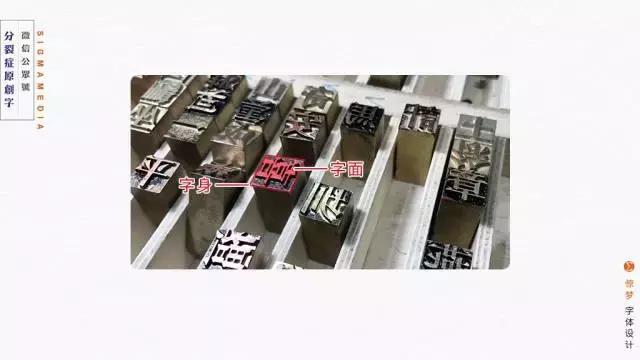 字身和字面的概念來自金屬活字type face,在金屬活字上,字面部分就是凸起的字,鉛模外框則是自身。對的,現在字體設計中的自身框、字面框正是由這里演化而來。