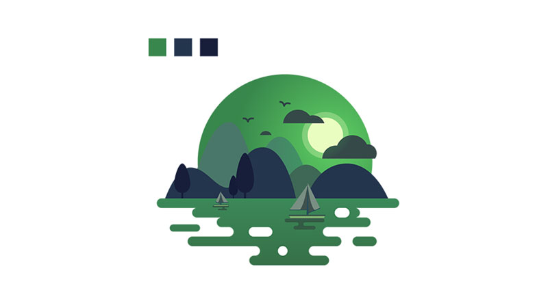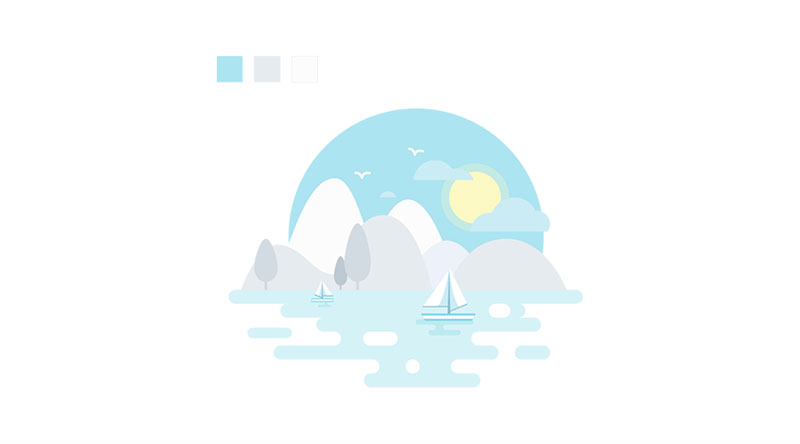 這張圖想表達的是冬日的風景,冬天清澈,干凈的印象使我選擇了淺色調調和,同時利用了明度的變化來表現層次感。