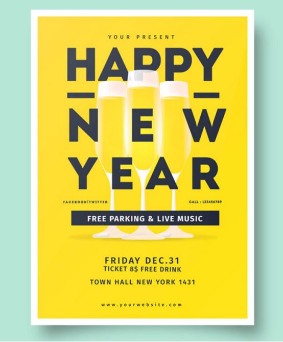 簡單樸素的特質(zhì)總是能夠成為一張簡潔優(yōu)雅的海報(bào)的特色!就拿這張新年慶祝的海報(bào)舉例吧!這張海報(bào)包含了兩種顏色版本,我們可以借鑒它的風(fēng)格和色彩搭配的技巧,結(jié)合自己的想法實(shí)現(xiàn)我們的設(shè)計(jì)!