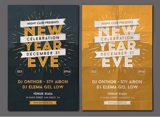 一個清爽干凈的設(shè)計(jì),這個新年宣傳單是簡潔有效的!從淺色到深色的選擇,我們能夠探索出更多這款設(shè)計(jì)潛在的魅力。同時,吸納足夠多的顏色,為你的創(chuàng)作也帶來了很多便利(很多色彩你都可以隨心所欲搭配)!