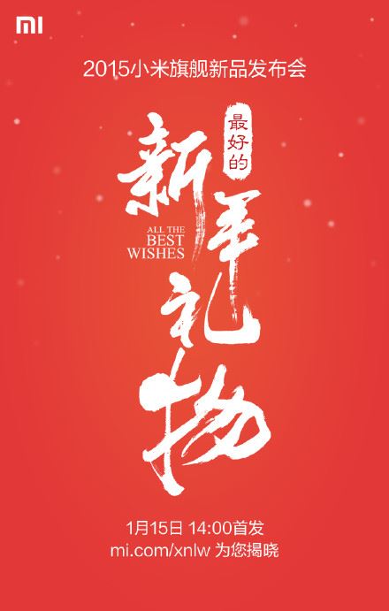 小米2015年的新品發布會海報也采用了中間對齊的形式,讓關看者很容易的就聚焦到中間“新年禮物”的重要信息上。