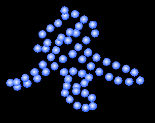 |||使用快捷方式ctrl+c將該混合對象拷貝到剪貼板中。按住ctrl鍵,分別選中混合對象和“冬”字的一條路徑,使用菜單命令:modify>combine>join blend to paths,此時這些小圓球就被會吸附到路徑對象中。如果您覺得路徑上小圓球太少的話,打開object面板,調整blend on a path選項中的steps步驟,這兒我設置為30。就會出現如下圖所示的效果。