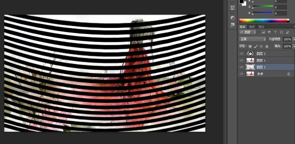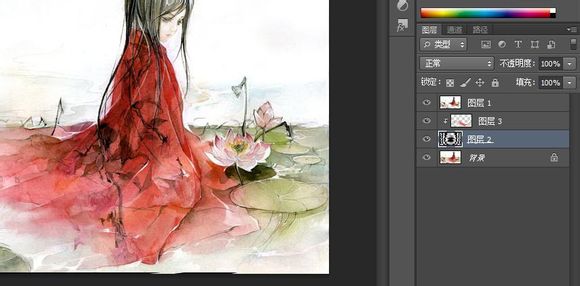 然后在圖層3和圖層2之間按住ALT鍵鼠標點一下就變成這樣了,這個好像叫【剪貼蒙板,我學PS只記快捷鍵不記名字的,效率永遠排第一】