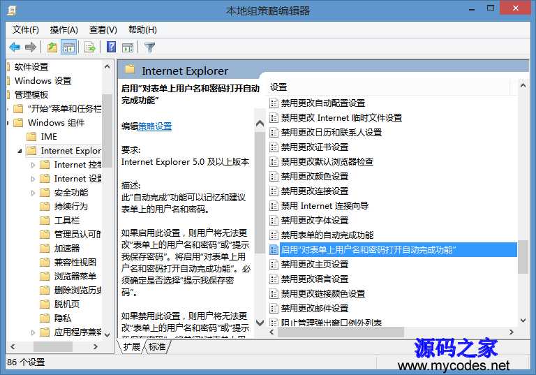 啟用“對表單上用戶名和密碼打開自動完成功能”,設置為“啟用”