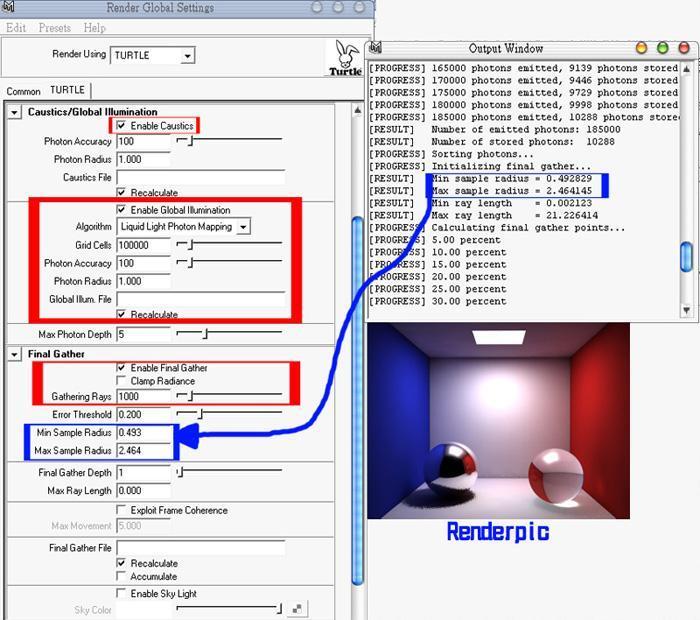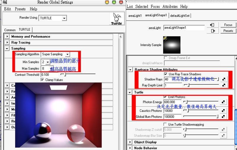 這是 maya 的外掛渲染器 - turtle,現在要教如何使用 gi 和 caustics,不過我覺得官方提供的教學好像有點濫 . 大家隨便看就行了 .