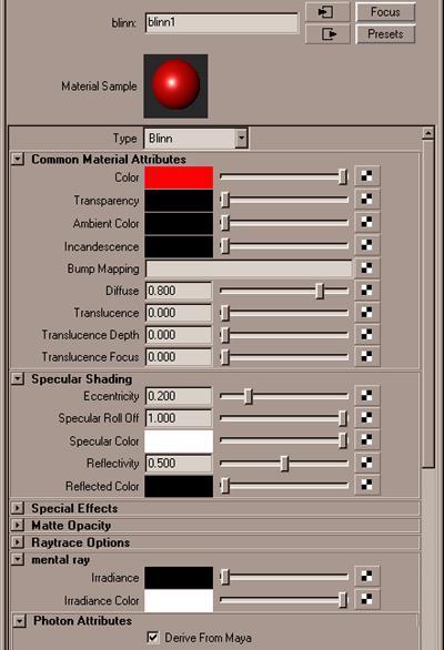 ——材質方面呢,我用的是一個 lambert 作為這個 poly 平面,并將 diffuse 設置為 8.00 ,所有的半透明選項都設置為 0 ;至于球體,我用的則是如下的設置: